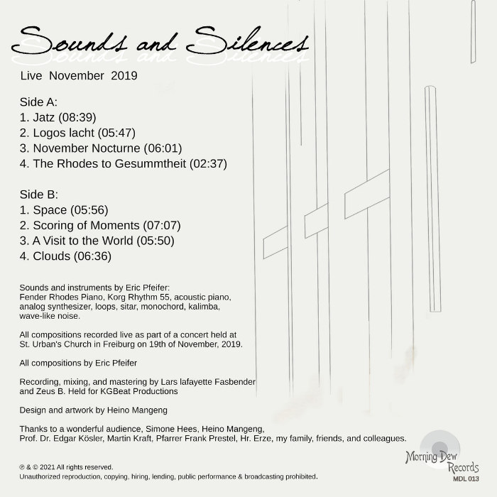This is the first solo album by the Gepetto Project’s multiinstrumentalist and songwriter. Recorded live in St. Urban Church in Freiburg on November 19, 2019. Eric takes his audience out on a trip into the world of electronic, experimental, minimal-jazzy, improvised sounds – and silences.